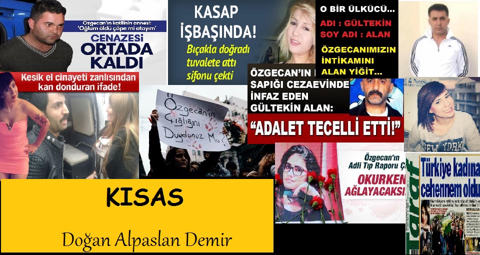 Kısas isteyenlere hatırlatmak isterim, günümüzde kısas cezası uygulanıyor olsaydı ve Özgecan’ın öldürülmesi sonrası yakınları kısas yerine diyet talep etseydi, Suphi Altındöken elini kolunu sallayarak aramızda dolaşıyor olacaktı. Halk arasında bir söz var, hiç de sevmem, “paran kadar konuş” diye, kısasa uygularsak şöyle olurdu bu söz: “Deven kadar öldür”