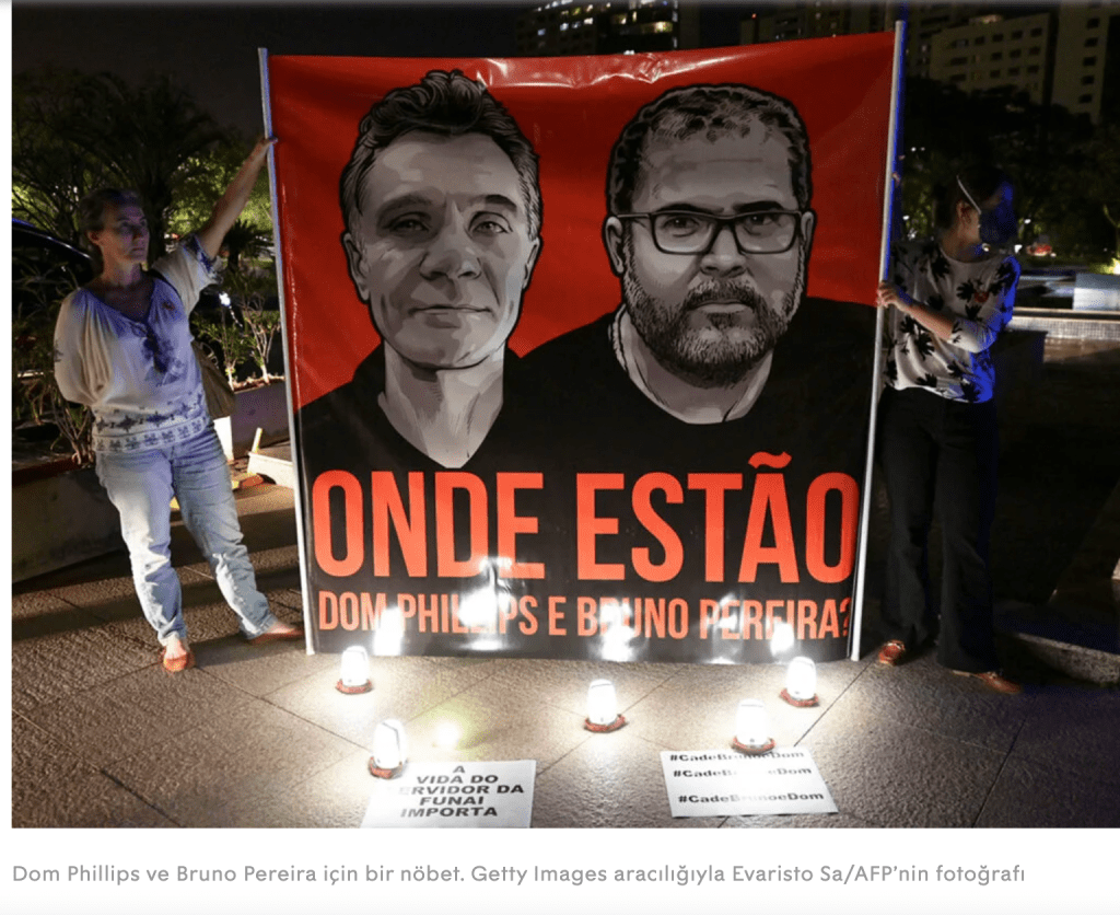Dom Phillips ve Bruno Pereira aniden kaybolup ormanda aramalar başladığında Devlet Başkanı Bolsonaro büyük bir soğukkanlılıkla “Muhtemelen idam edildiler” açıklamasını yaptı. Ölenlerin cesetleri bulunduktan sonra Devlet Başkanı Bolsonaro, öldürülen gazeteci Dom Philipps’i “hoş karşılanmadığı bölgelere akılsızca” geziler yapmakla” suçladı. Bolsonaro’nun açıklamaları, Amazon ormanlarına egemen olan suç ve güç örgütünün nerelere kadar uzandığının delilidir.